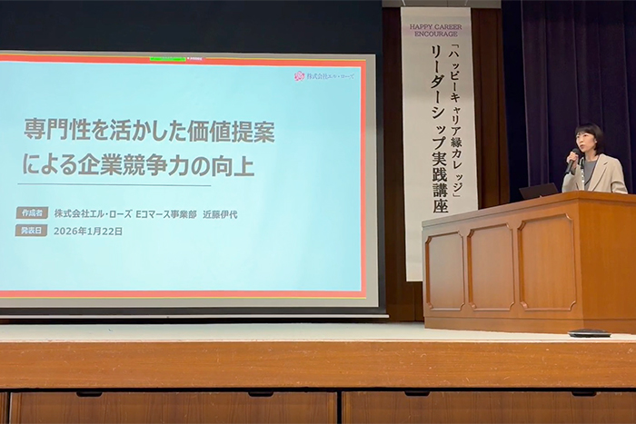 「ハッピーキャリア“縁”カレッジ」は、働く女性のキャリア形成やリーダー育成を目的とした研修で、講義やグループワーク、受講生同士の交流、実践的な課題発表などを通して、管理職として必要な視点やスキルを学ぶ内容となっています。
